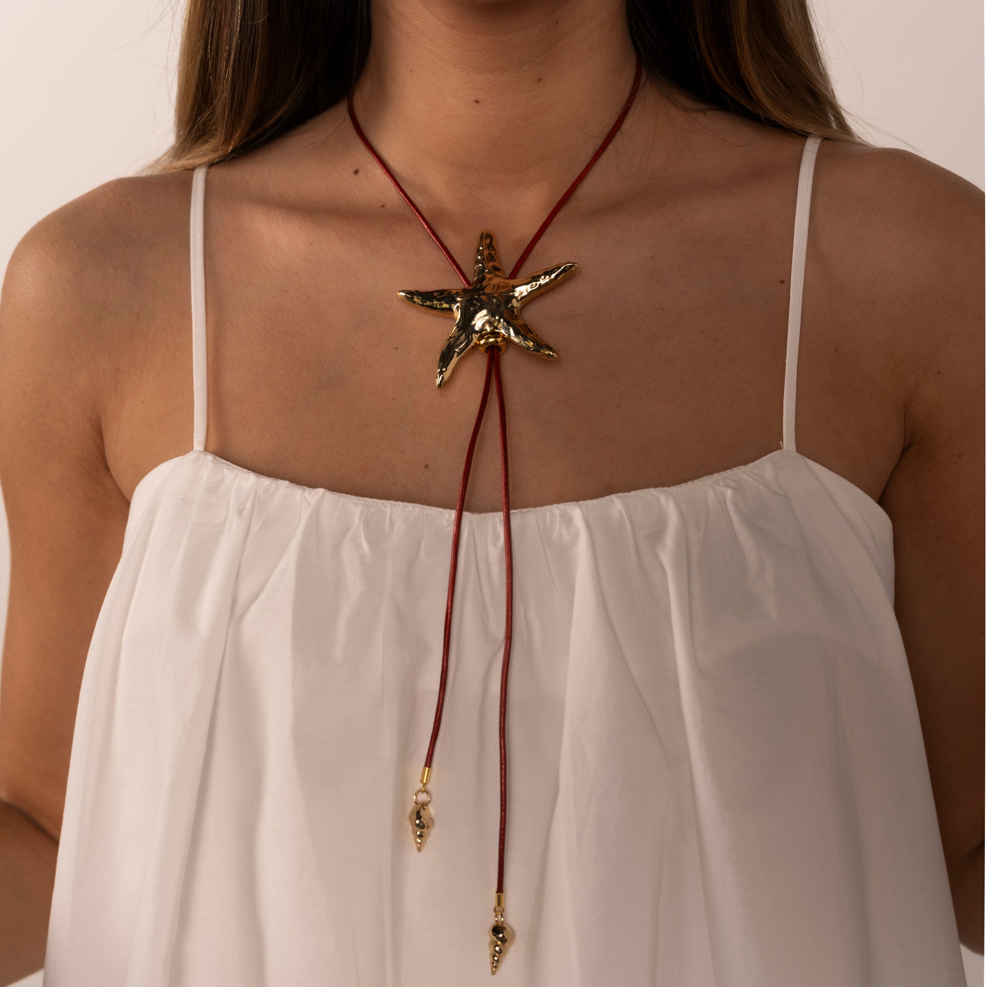 Collar estrella con cordón cuero . Colección Crucero.